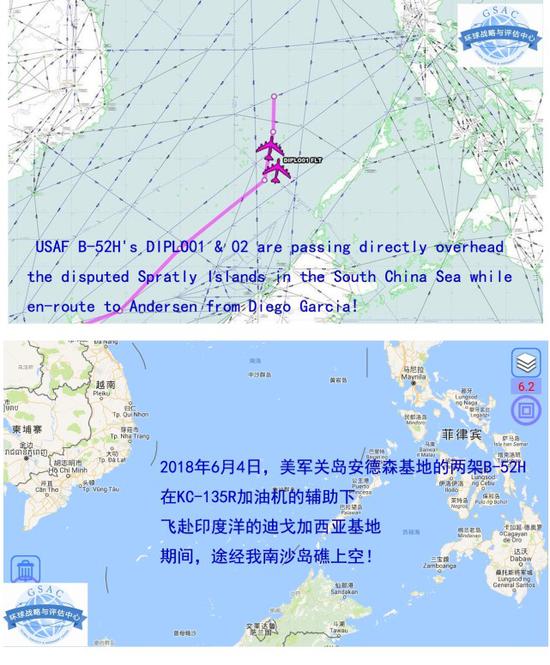 途經我南海南沙島礁上空(來自:環球網軍事)
